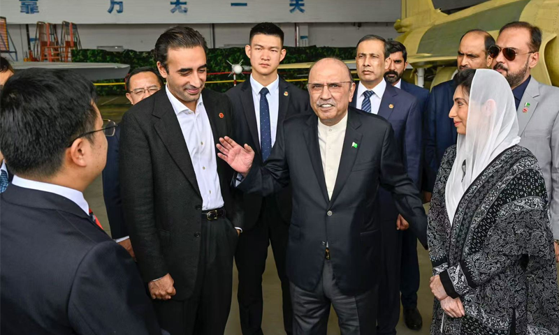 On Sunday, President Asif Ali Zardari visited the aircraft complex of the Aviation Industry Corporation of China (AVIC), being the first foreign head of state to tour the facility that produces J10C fighter jets.